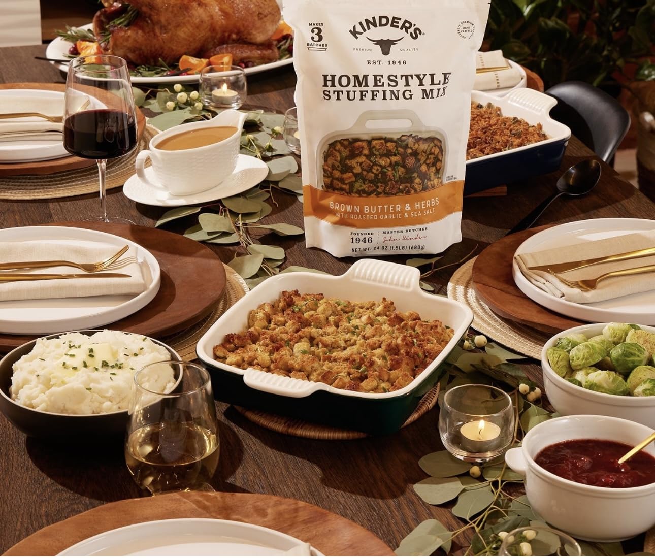 Enjoy the perfect blend of rich flavor and comforting texture with Kinders Brown Butter and Herbs Homestyle Stuffing Mix. Made with a savory combination of brown butter, aromatic herbs, roasted garlic, and sea salt, it adds a gourmet touch to any holiday table. Crafted from high-quality ingredients and free from high fructose corn syrup and hydrolyzed soy protein, this easy-to-prepare mix delivers true homestyle goodness in every bite. Rooted in a legacy of quality and flavor dating back to 1946, Kinders continues to uphold its tradition of handcrafted excellence. Each batch is carefully made with premium ingredients and contains no artificial flavors, fillers, or additives. The result is a clean, delicious stuffing that brings warmth, comfort, and classic taste to family gatherings and festive meals alike.