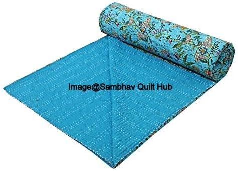 Made with 100% cotton and natural vegetable colors. This piece is of art is completely hand stitched by Women artisan in Rajasthan, India. It can make any room alive with its vivid colors, stunning Bird of Paradise Floral print and embroidery, made using traditional and famous kantha hand embroidery method. Made from two thin layer of cotton fabric make this piece of art irresistible and also very comfortable. Adding to it's style, this kantha quilt is reversible and both sides can be used. Kantha is still the most popular form of embroidery practiced by rural women.typically use old saris and cloth and layer them with kantha stitch to make a light blanket, throw or bedspread. These cotton lightweight "Quilts" with a beautiful and colorful Paisley design can be used as 1. Bedspread , Bedding Throw , Blanket Or Quilt 2. A Summer Bed Cover 3. A Throw 4. A Fabulous Picnic Rug 5. Nice Bedroom Quilt , This can fit to a 90 x 108/60*90/108X108 inch's wide King/Twin size bed as blanket or throw or can easily fit as bedspread / bed cover to King/Twin bed .Size Twin (60X90), Queen Size (90X108 inch), King Size (108X108) inch
