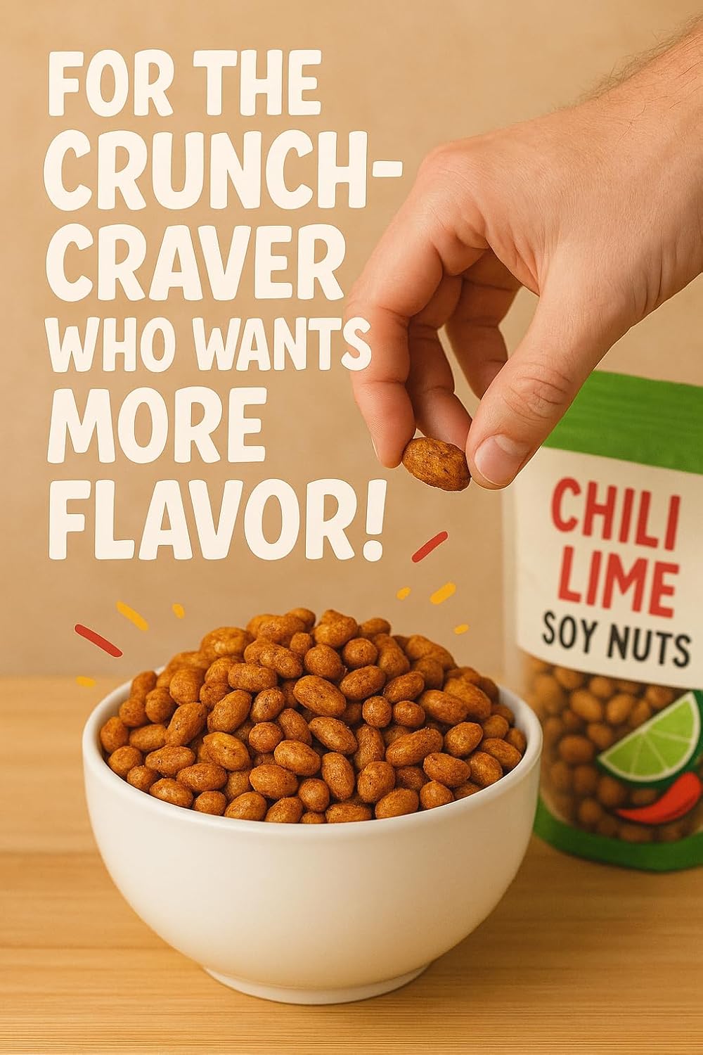 Soy Nuts Signature Flavor Chili Lime - 16 Ounce Healthy Snack Elevate your snacking experience with our Soy Nuts Signature Flavor Chili Lime. Packed with bold, zesty flavors and wholesome nutrition, these soy nuts are the perfect healthy snack to satisfy your cravings. Features: Signature Chili Lime Flavor: Enjoy the perfect blend of spicy chili and tangy lime in every bite, delivering a unique and irresistible taste sensation. Healthy and Nutritious: Made from high-quality soy protein, our soy nuts are a nutritious snack option that supports your healthy lifestyle. 16 Ounce Pack: Each bag contains a generous 16 ounces of deliciously flavored soy nuts, ideal for sharing or enjoying throughout the week. High Protein Snack: With a high protein content, these soy nuts provide a satisfying and energizing snack that keeps you full longer. Crispy and Crunchy: Our soy nuts are roasted to perfection, offering a delightful crunch that complements the bold flavors. Versatile Snacking: Perfect for on-the-go snacking, adding to salads, or pairing with your favorite beverages for a flavorful treat. Healthy Alternative: A great alternative to traditional snacks, our soy nuts are low in fat and packed with essential nutrients. Why Choose Our Soy Nuts Signature Flavor Chili Lime? Our Chili Lime Soy Nuts offer a delectable combination of flavor and nutrition, making them an excellent choice for anyone looking to snack healthier without sacrificing taste. Whether you’re at work, at home, or on the go, these soy nuts provide a convenient and delicious way to stay energized and satisfied. Indulge in the zesty, bold flavors of our Soy Nuts Signature Flavor Chili Lime. Order your 16-ounce pack today and experience the perfect blend of taste and nutrition in every bite!