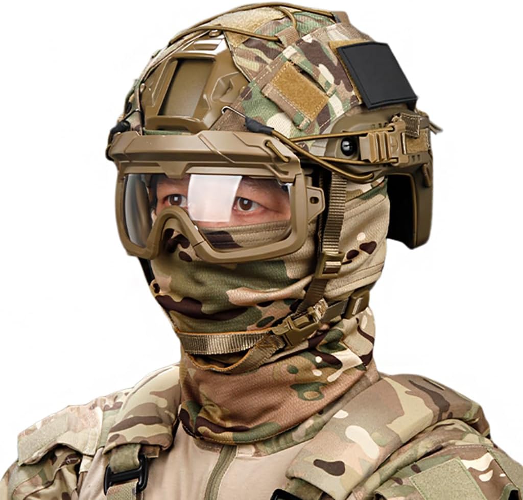 Note to buyers! This Headset needs to be used with PTT (not included). Note: C and F models in the ‘MAX’ is noise-cancelling headphones (requires two batteries); ‘MIN’ is not noise-cancelling headphones (does not require batteries) KBFLWBF FAST Helmet It is about 1.36 lb. The lightweight, fully adjustable helmet. Ergonomic weight distribution reduces pressure points during extended wear Tactical goggles are made of high-quality TPE+ABS+PC lenses; two ways of use: use the elastic band alone or with a helmet