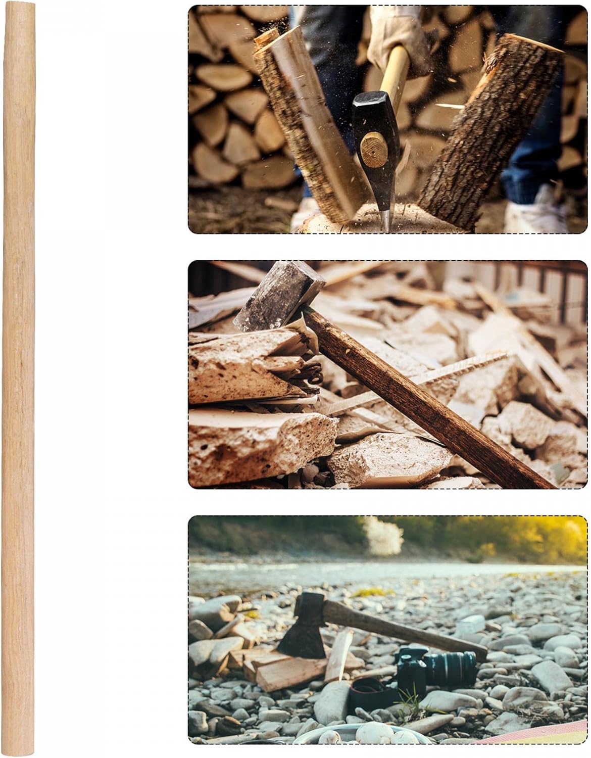35 Inch Wood Hammer Handle Replacement Oval Eye 2 PackFeature:Easy replace your broken handle directly, with a good match.Use hardness oak wood, ergonomic design, with comfortable hand feel, shock absorbent and durable.Set of 2 will be more cost-effective, As a backup in case of emergency needWide use for most of the popular hammers,can diy your own hammer by yourself.Specification:Product Type: Hammer handleHandle Material: Oak woodHandle Length: 35 inch (90cm)Weight: 1.781lb(808g) eachEye Size: 1.41" x 1.06"Application: sledge hammer, club hammer, claw hammer, cross peen hammer, tack hammer...Package Content: set of 2 wood handle replacement 35 inchHow to replace?1. Drilling out the broken handle from the old head2. If the handle eye is bigger than your hammer head, You should trim off a bit of wood on each side of the replacement handle shaft until it would tightly fit into your hammer head3. Finally, you need to pound the handle into your old head, to make sure it tight fit your hammerPlease Note:Read the description to make sure the product will fit your need