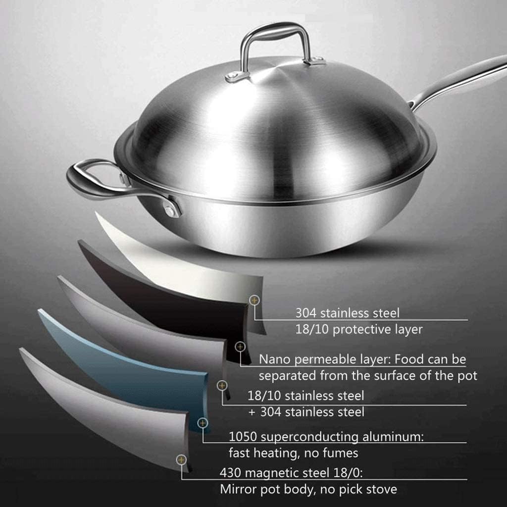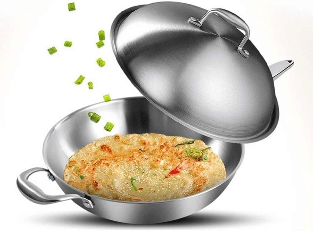 Stainless Steel Woks &Stir-Fry Pan Made from 304 stainless steel for even heat distribution and perfect cooking results. The body and handle are made from stainless steel which is easy to clean,with a hole on the handle is very convenient to hang up,easy to storage. With handle on each side,easy to hold and convenient to use. Super safe, No Chemical No coated and Non stick, it's natural friendly and good to your healthy. The surface of the wok is nitriding processed, improving durability, corrosion resistance and high temperature resistance, keeping shiny, less likely to rust. Size : 32cm ; Material: Cast Iron ; Lid Type: Stainless Steel Lid. Reminder 1.Avoid long-time heating, boiling, boiling,that is easy to cause fire . 2.Cooking food capacity should be controlled in the pot body volume 70 %. Warm Tips: 1. Due to different shooting scenes or computer monitor lighting, the actual product color may be slightly different from the picture color, please understand. 2. As the product size is manually measured, please allow an error of 1-3 cm. 3. We only sell woks, not other decorations, please understand. 4. Before buying, you can contact us in time if you have any questions, and we will serve you as soon as possible.