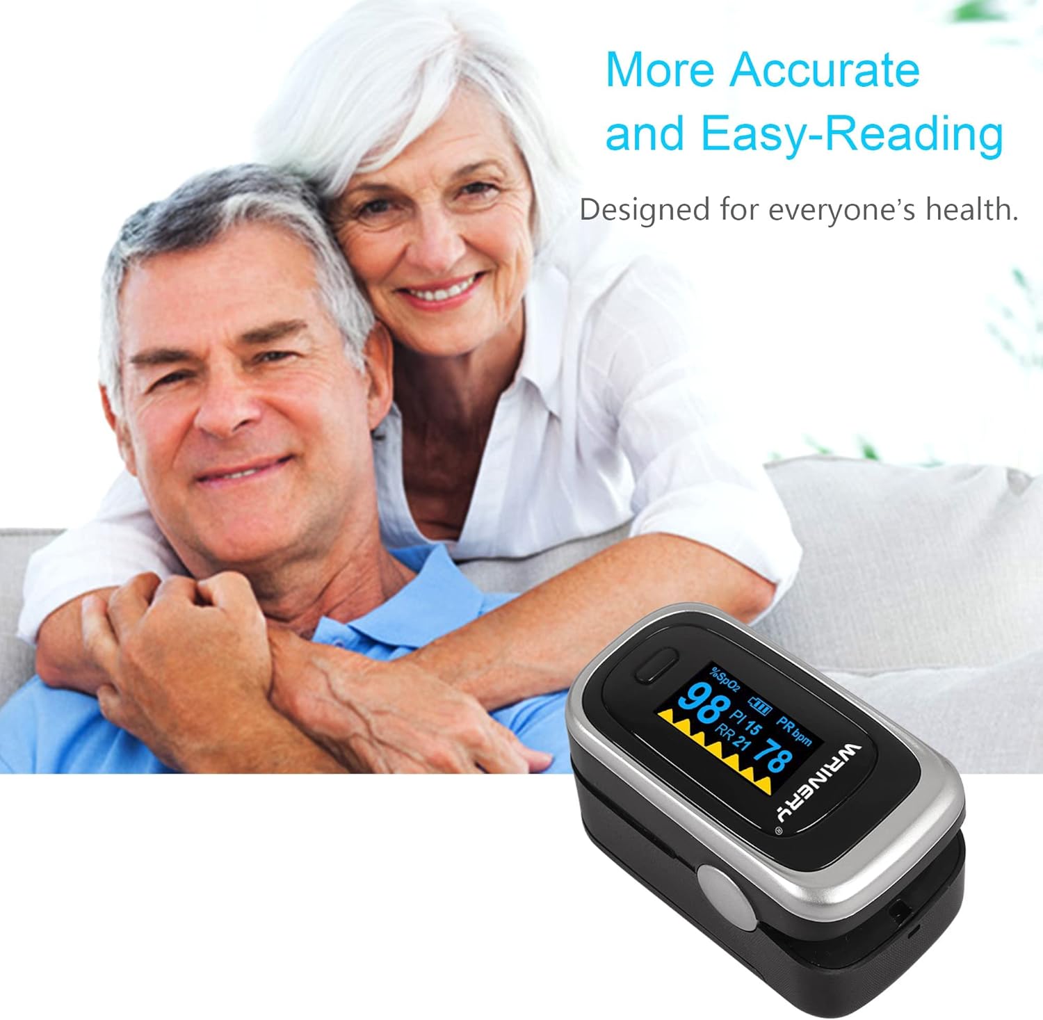 Why choose WRINERY’s finger oximeter?WRINERY’s oximeter finger is a device designed to provide an accurate reading of your blood oxygen level and pulse rate from your fingertip in 8 seconds. Are you ready to achieve the good lifestyle you’ve always wanted? Our WRINERY pulse oximeter with case won’t let you down. Easy to Use – Simply place your finger inside the chamber of the machine, press the operating button, and then wait. Within seconds, you’ll have an accurate reading of you SpO2 levels and pulse rate.Accomodates wide range of finger sizes -- finger chamber with smart spring system. Works for ages 12 and above.Reasons for Inaccurate Reading When your blood perfusion level is low, the spo2 pulse oximeter might have a hard time registering an accurate reading; We suggest that you warm your hands and fingers before taking the measurements (You can do this simply by rubbing your hands together); Following that, please also ensure that you keep your hand still because any movement can cause the device to reset its reading; Nail polish and false fingernails may also cause false readings. Troubleshooting Back case (battery cover) not stay closed? The original design was considering help user to open the battery cover easily. Try to put the two batteries in the battery cabinet and you will find the battery case stay more closed than no batteries in it. If this doesn’t help, just contact us for further solution.Portable and Easy to Carry 1 x Finger oxygen and heart rate monitor 1 x Lanyard 1 x User manual 2 x AAA batteries1 x Protective case1 x Hook